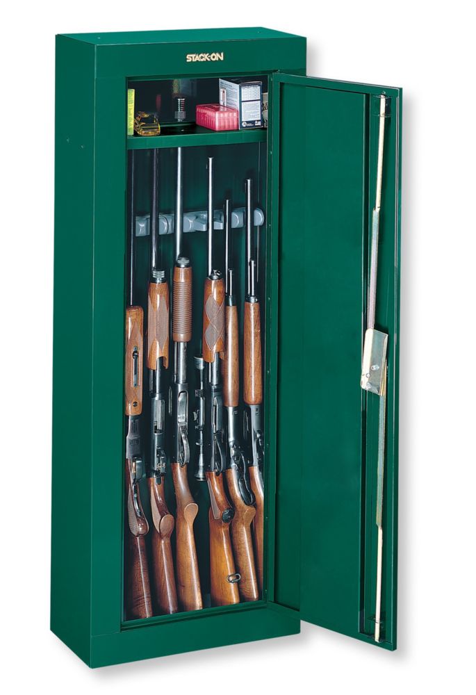 Stack-On GCPO-12-DS Gun Cabinet Pull Out Steel Security ... from www.gunsafes.com The top shelf provides access to ammo or magazines, or it can be removed to create additional space. The cabinet holds 14 rifles or shotguns up to 54 inches tall. This cabinet holds up to 10 rifles or shotguns up to 52" tall. Proper pistol and handgun safes are critical for protection of small guns. It features an electronic lock that keeps it secured until needed. 16 or 31 gun double door security cabinet view product; Bomgaars sporting goods, knife sharpener, ammo, binoculars, collegiate gear, bb's, hunting accessories, gun cleaning accessories, safes, led flashlights, 2 way radio. Brickseek snapshot view on lowe's local alerts.